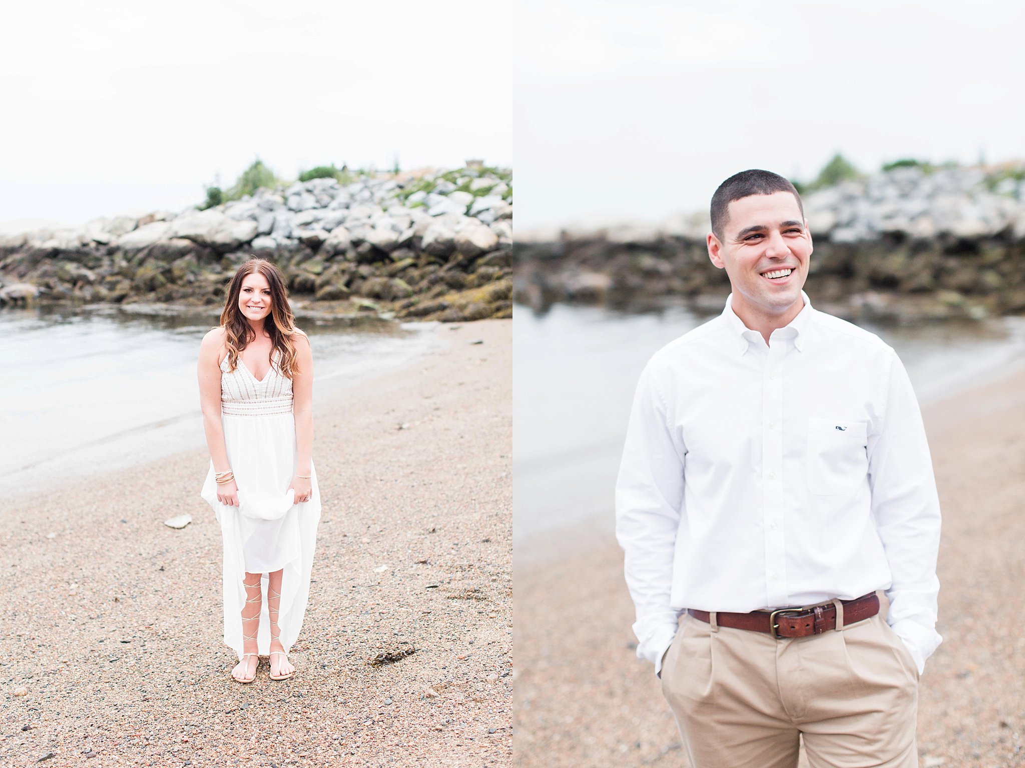 Michalene and Chris’ engagement session started at Notch Brewery, where the three of us had a beer and hung out for a little! Then we drove over to the Sail Loft just a few blocks away from Notch. The Sail Loft was such a cool building so we couldn’t pass that up! It also had a really picturesque rocky walkway that I loved as well! Then on our way heading over to the Salem Willows, Chris spotted a street sign for Hardy Street, so we had to make a stop there to take a picture under the sign because Chris’ last name is Hardy! We didn’t play any arcade games at the Willows, but there’s a gorgeous pier and beautiful rocks that made for the perfect backdrop! It ended up being an overcast day, so we had such beautiful, even, natural light (aka my favorite weather for capturing bright, dreamy pictures). Even though it was cloudy and overcast all day, the evening ended with the most beautiful orange, pink, and red sunset! It was the best way to end an awesome evening spent with these two! I am so excited to share all of my favorite images from this Salem engagement session for these two middle school sweethearts!!